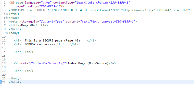 This tutorial explains to you how you can create a simple Spring simple mvc application with no security enforcement. This application will be used to explain later the main concepts of Spring Security.